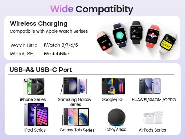 Universal Compatibility: This for Apple watch charger block is compatible with a wide range of devices, including Apple Watch Series 9, 8, SE, 7, 6, 5, 4, 3, and 2, and Compatible with iPhone 16, 15, 14, 13, 12, 11 Pro Max, Mini, Plus, XS Max, XS, X, XR, 8 Plus, and 8. It also works with AirPods Pro and Max, iPad Pro, Air, and Mini models. With such a wide range of compatibility, it's an ideal charging solution for your various devices.