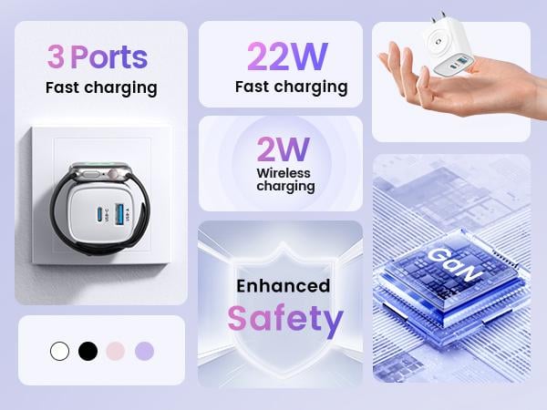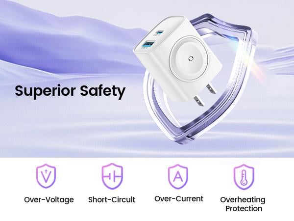 UL Certification and Safety Assurance: Our iWatch charger block boasts UL and FCC certifications, ensuring adherence to rigorous safety standards. Featuring seven layers of advanced protection—including temperature, overcurrent, overvoltage, overcharge, overload, overheating, and short circuit protection—it guarantees the utmost safety for you and your loved ones. You can trust in our high-quality craftsmanship and commitment to your safety.