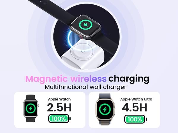 Charger for Apple Watch: Unique cordless charger for Apple Watch series,equipped with a 2.5W magnetic wireless watch charger compatible with Apple Watch, no extra cables need and you can direclty charging for your iWatch. perfect for travel charging block.(wireless charger only support for Apple Watch)