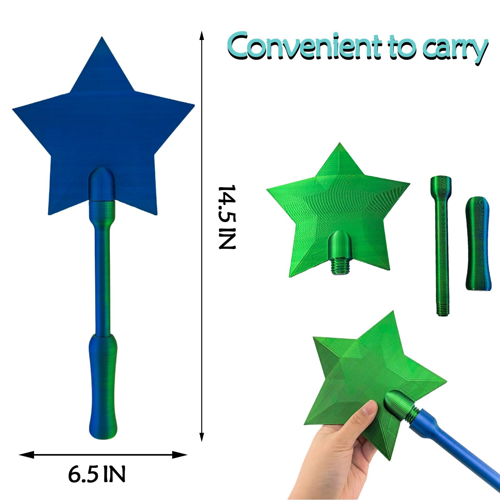 Standing at 14.5 inches (37 cm), this wand is lightweight, easy to hold, and 3D printed from smooth, durable PLA plastic. Take it anywhere—shopping trips, store visits, or imaginative play. Magic that fits right in your hand!
