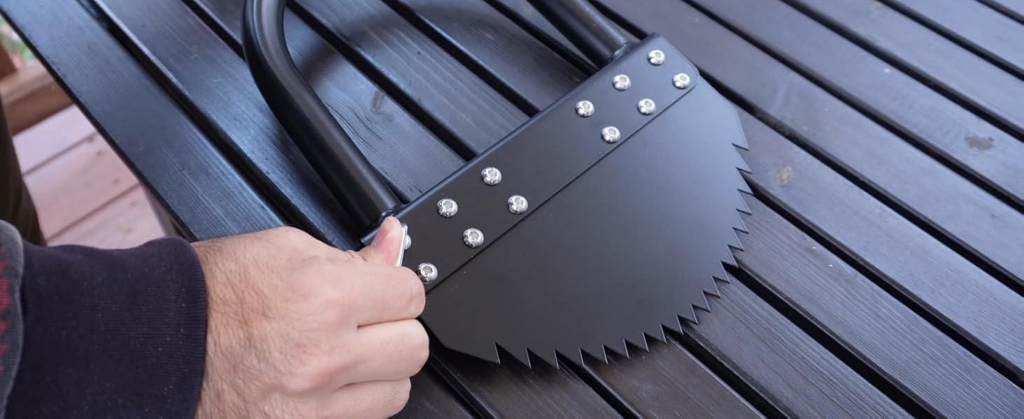 Featuring a high-quality serrated spring steel blade, Effortlessly Slices through thick grass & roots