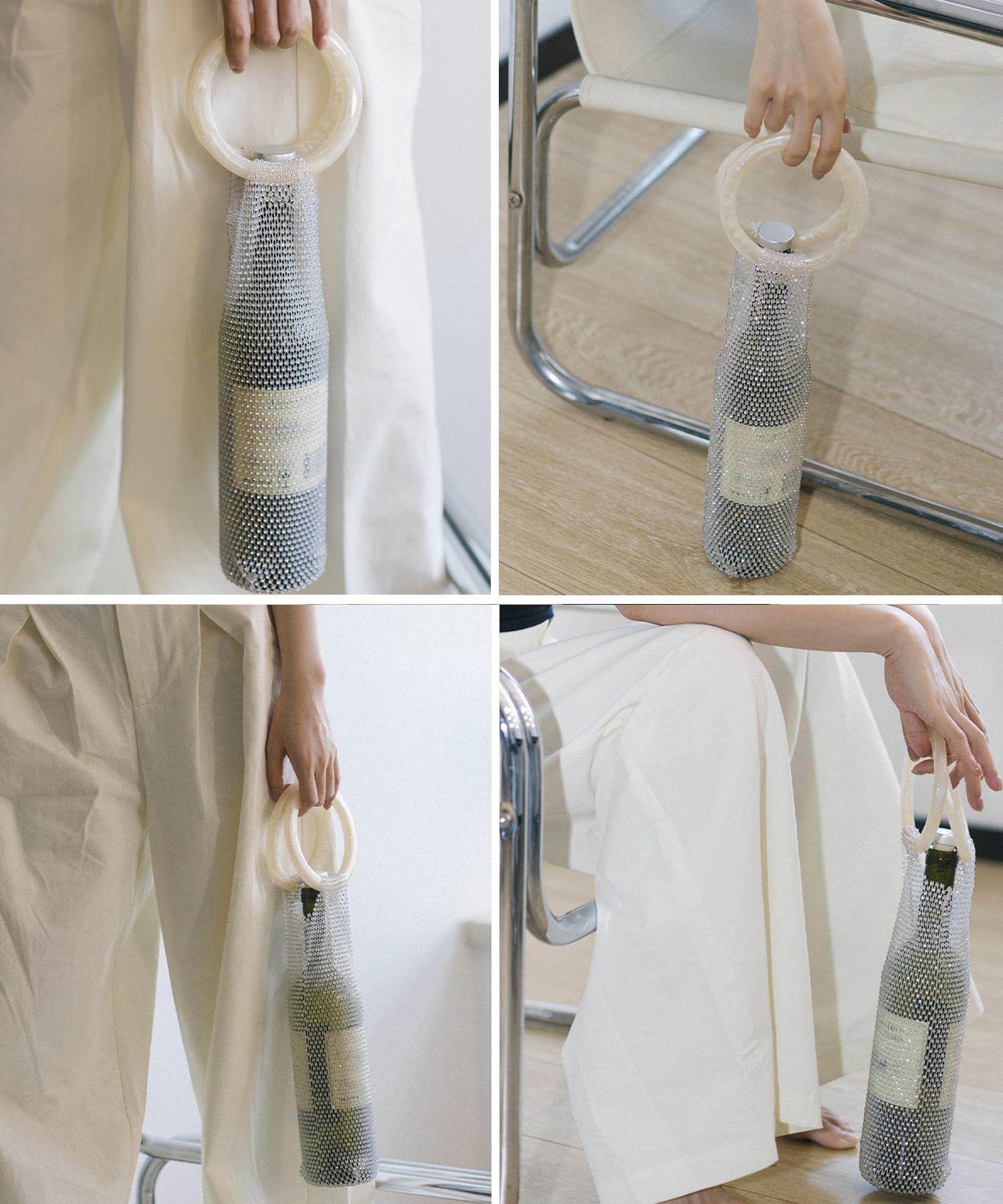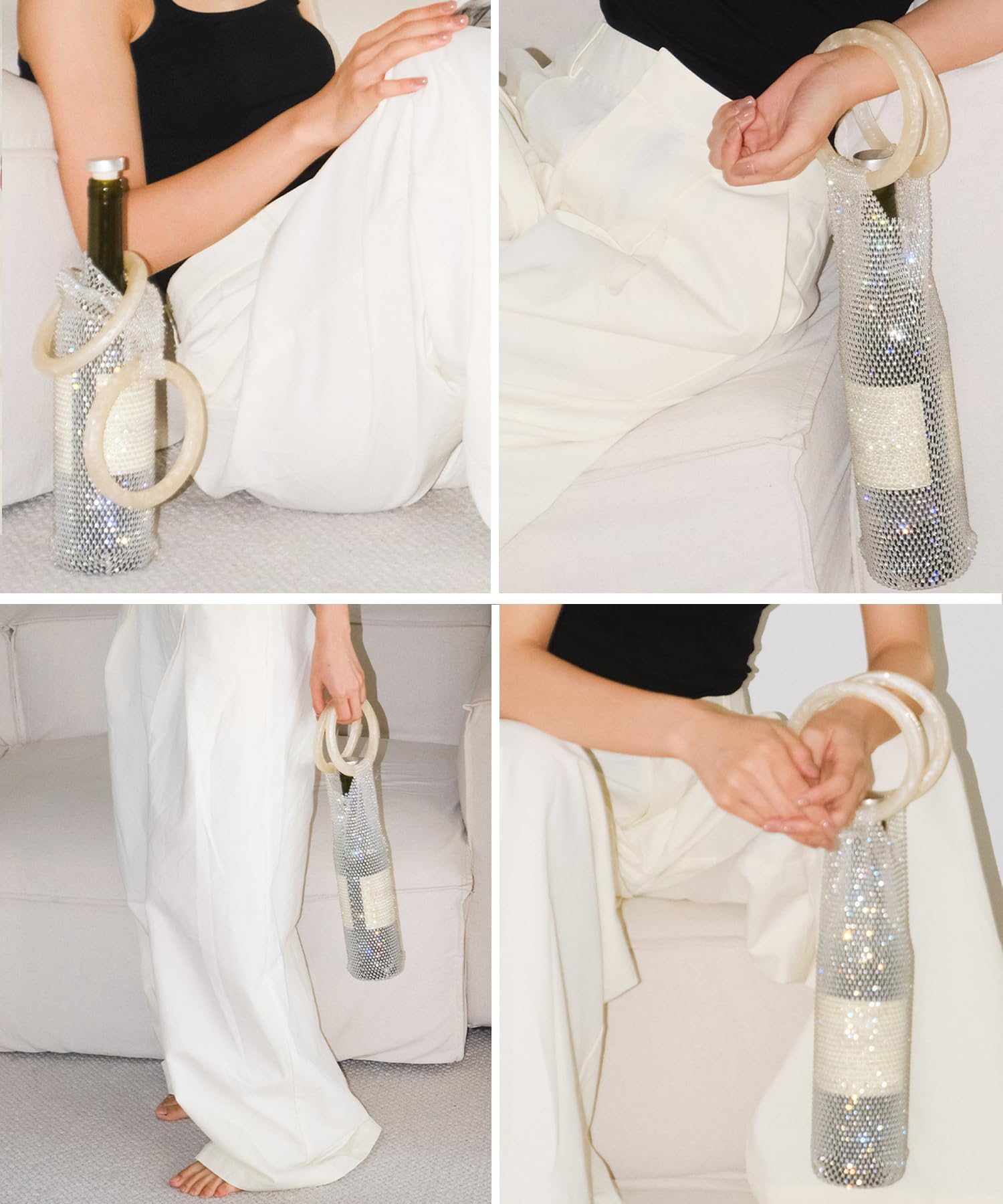 Premium Construction: Our handwoven bottle tote combines Italian-inspired resin handles with strong glittering mesh. Durable materials ensure lasting quality while the decorative mesh adds a touch of glamour.